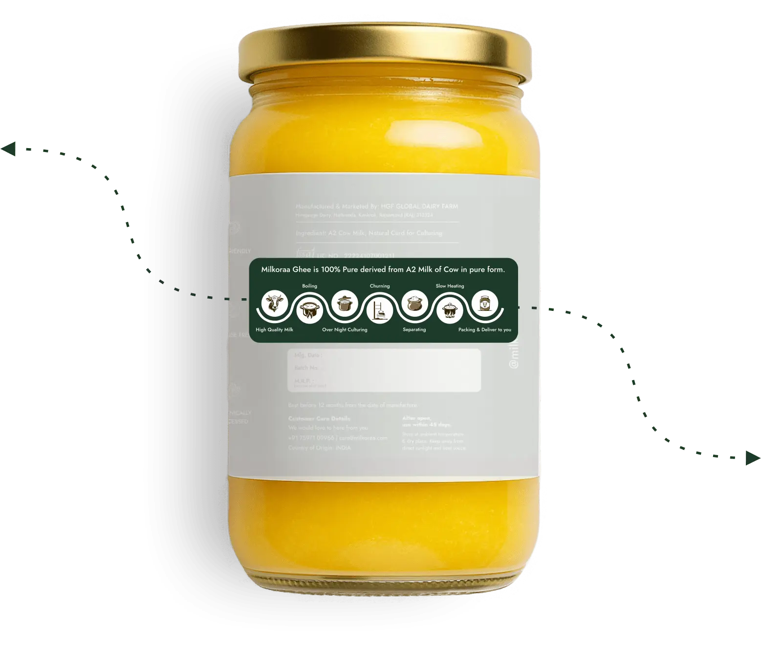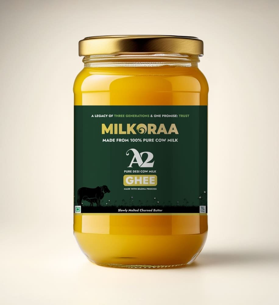 At Milkoraa, we carry forward this timeless legacy with utmost sincerity. Our ghee is made from 100% pure A2 milk sourced from desi cows raised with care, compassion, and natural feed. We follow the authentic Bilona method using modern hygienic practices to ensure you get the same purity, taste, and health benefits that our ancestors cherished.