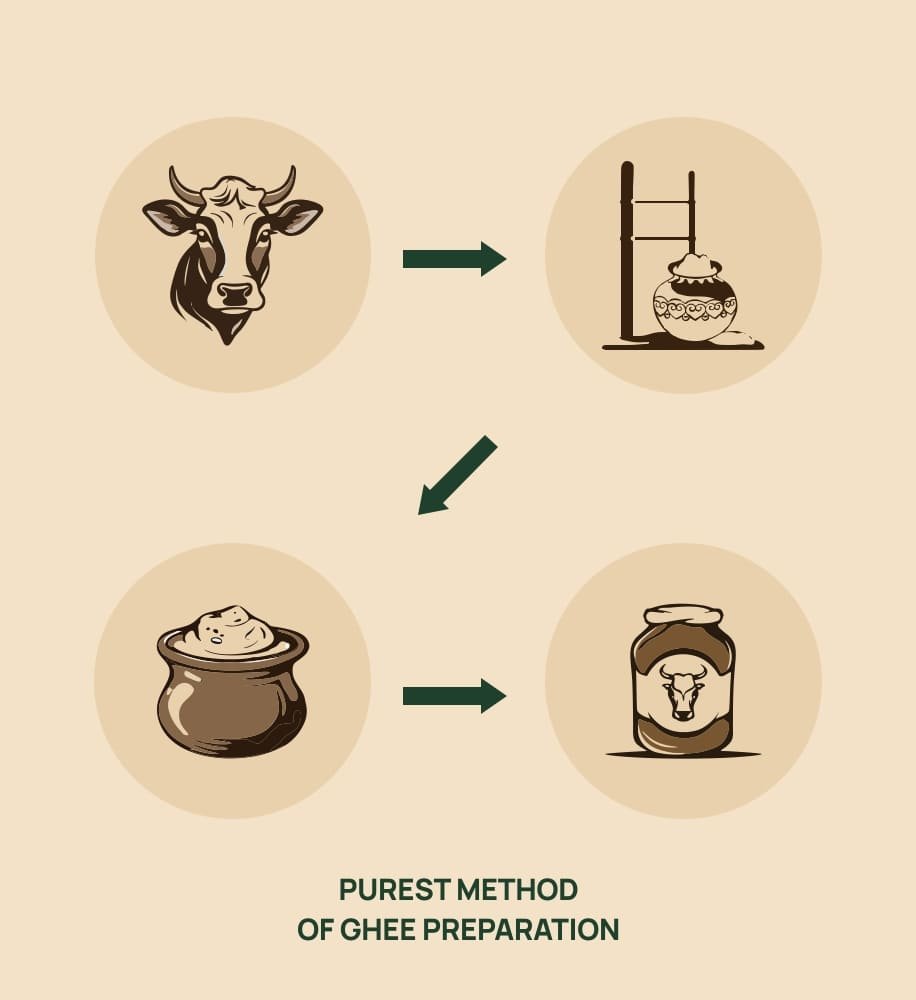 This meticulous process ensures that every drop of Bilona Ghee retains maximum nutrients, natural aroma, granular texture, and rich taste.
